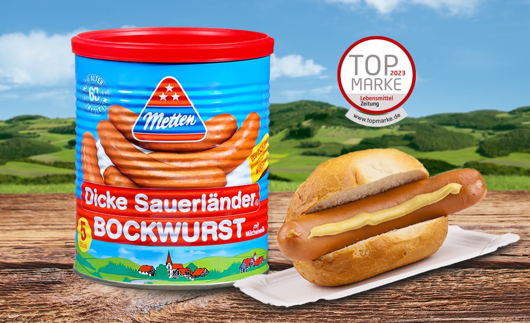Die Geburtsstunde der "Dicke Sauerländer" Bockwurst: Wilhelm Metten jun. hatte die Idee, die frischen Würstchen in Konservendosen für die Vorratshaltung anzubieten, wie er zu sagen pflegte als „eiserne Reserve“ für jede Gelegenheit.
